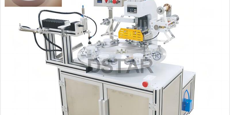 - Product: Plastic bottle cap top hot foil stamping machine with rotary workbench